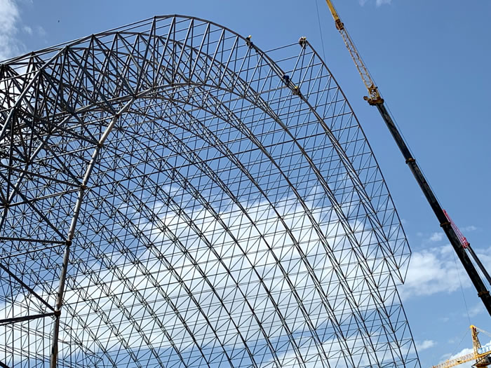 (2)网架加工前应对现场尺寸进行复测,确认无误后方可进行加工、安装;网架制作、运输、安装应遵守《空间网格结构技术规程》JGJ7-2010、《钢网架武冈螺栓球节点》JG/T 10-2009、《钢网架武冈螺栓球节点用高强度螺栓》 GB/T 16939-2016、《武冈钢结构武冈工程武冈施工规范》 GB50755-2012、《武冈钢结构武冈工程施工质量验收标准》 GB50205-2020。